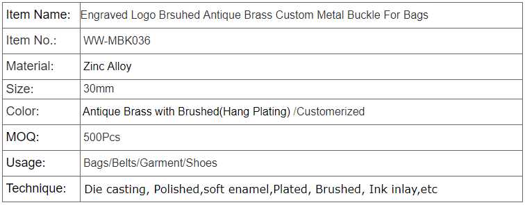 Engraved Logo Brsuhed Antique Brass Custom Metal Buckle For Bags for sale