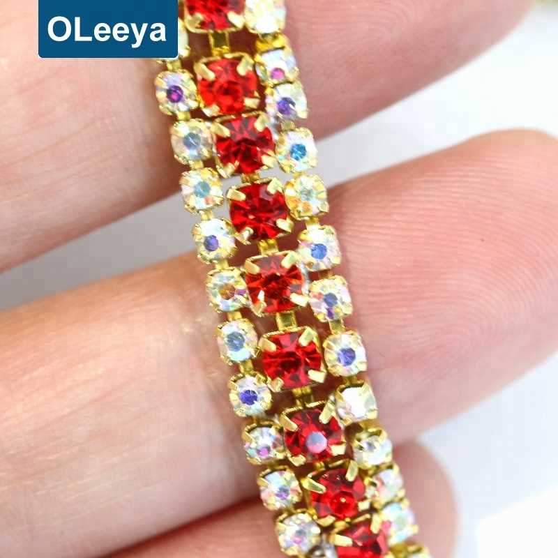Factory wholesale 3 rows crystal rhinestone cup chain with claw for wedding dresses sale