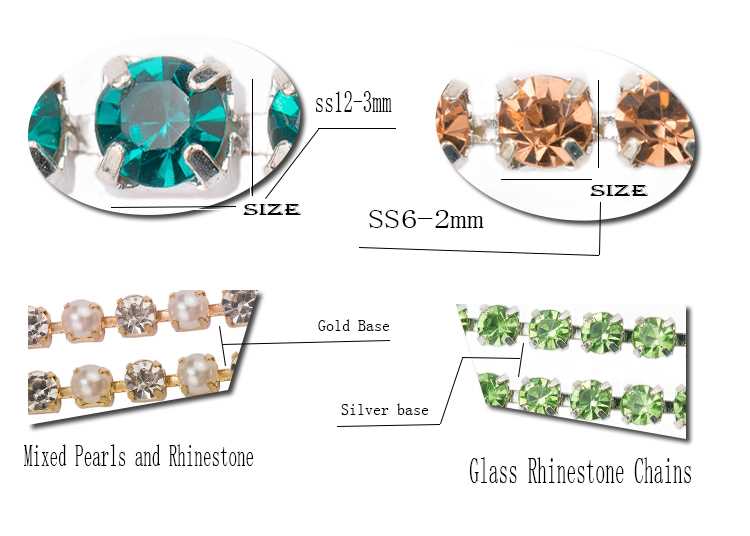 Name:Fashionable Silver Base Beige Round Pearl Mix Crystal Rhinestone 2mm 3mm Cup Chains