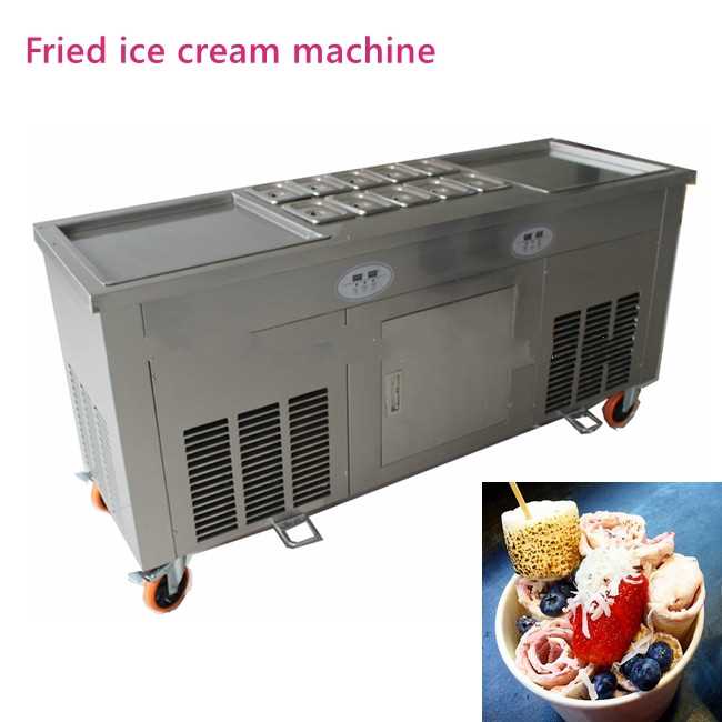 Fried ice cream machine-03 Thailand rolled 2+10 double square flat pan fried ice cream machine with Paypal accept