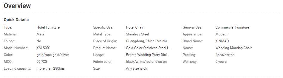 Gold Color Stainless Steel Indian Wedding Mandap Chair Sale