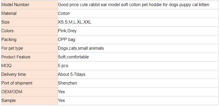 Good price cute rabbit ear model soft cotton pet hoodie for dogs puppy cat kitten
