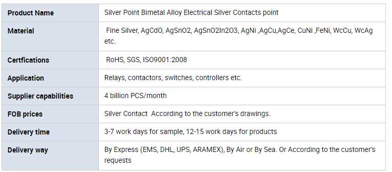 Main Products:silver contact,Electrical contacts,Electric Appliance inner parts,switch,relay