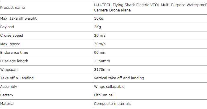 H.H.TECH Flying Shark Electric VTOL Multi-Purpose Waterproof Camera Drone Plane for sale