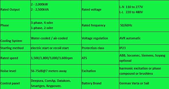 Diesel generator Specifications