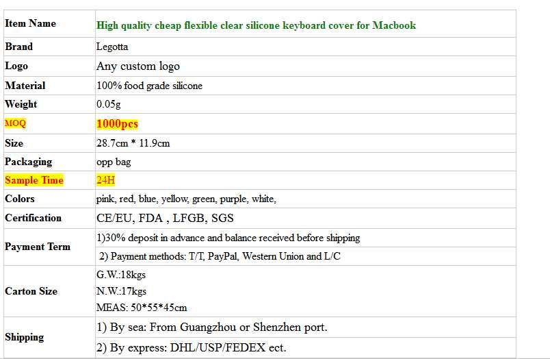 High quality cheap flexible clear silicone keyboard cover for Macbook sale
