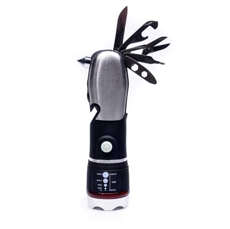 multifunctional emergency led outdoor zoom flashlight with seat belt cutter and hammer