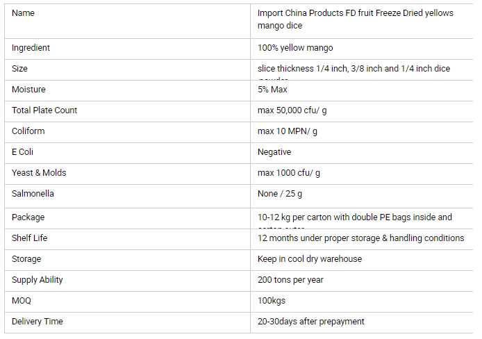 Import Products FD fruit Freeze Dried yellows mango dice for sale