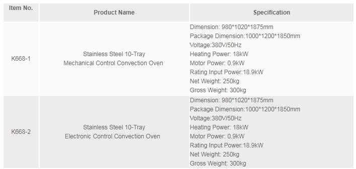 Wooden Package K668 Stainless Steel 10 Tray Electric Commercial Convection Oven