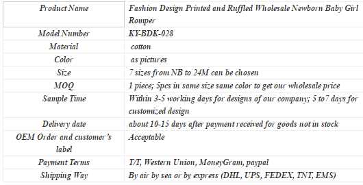 KY-BDK-028 Fashion Design Printed and Ruffled Wholesale Newborn Baby Girl Romper for sale