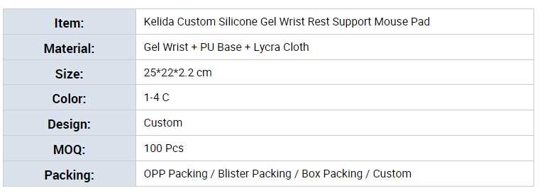 Kelida Custom Silicone Gel Wrist Rest Support Mouse Pad for sale