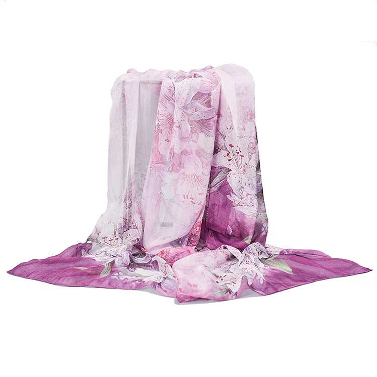 Ladies Fashionable Machine Hem Silk Chiffon Scarf manufacturing