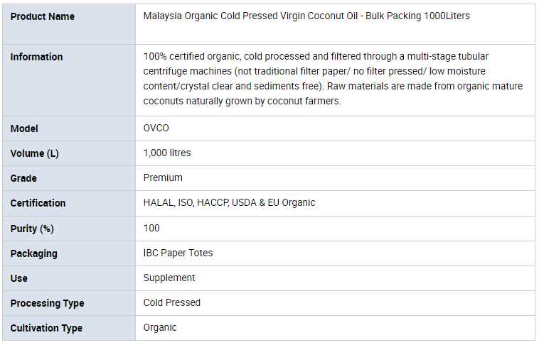 Malaysia Organic Cold Pressed Virgin Coconut Oil - Bulk Packing 1000Liters sale