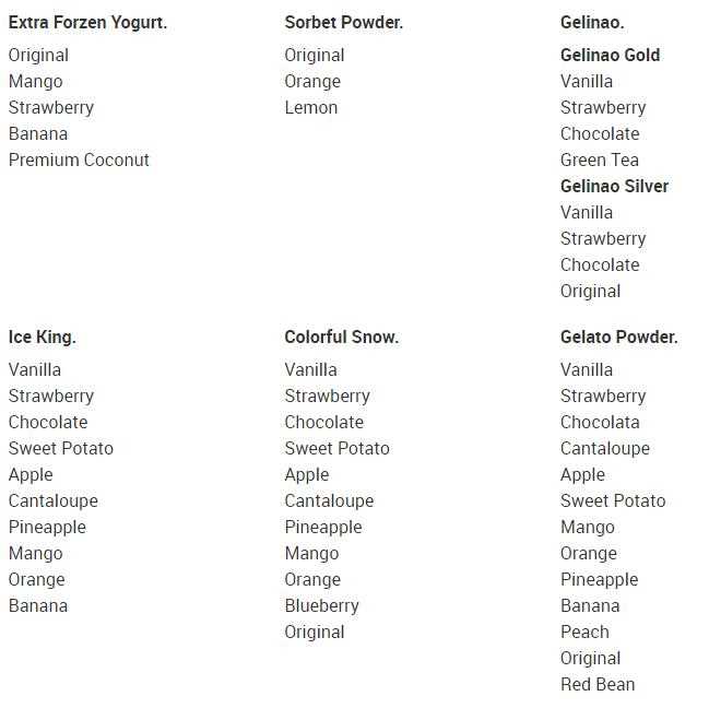 3,flavors: vanilla, chocolate, ctrawberry, yogurt and green tea, and so on.