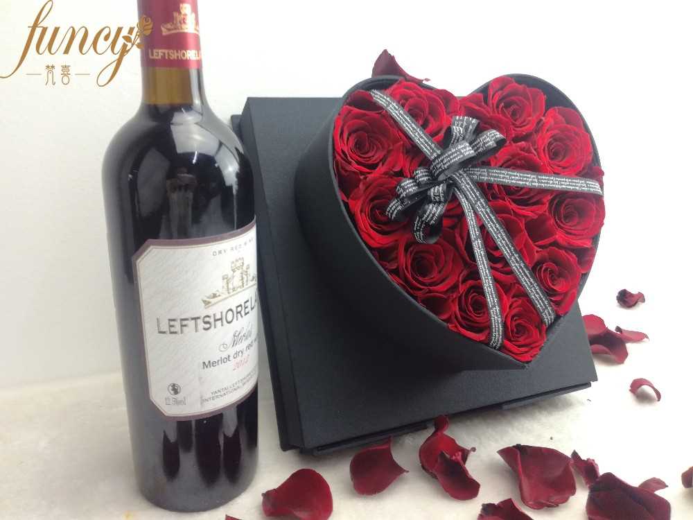 OEM Thanksgiving Day Gift Forever Eternal Everlasting Preserved Rose Flower in Heart Gift Box Sale