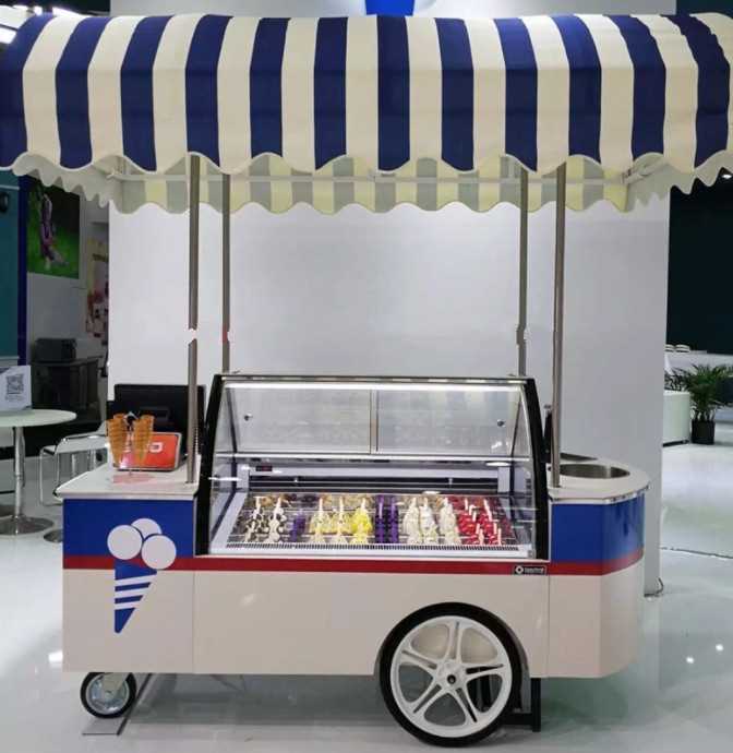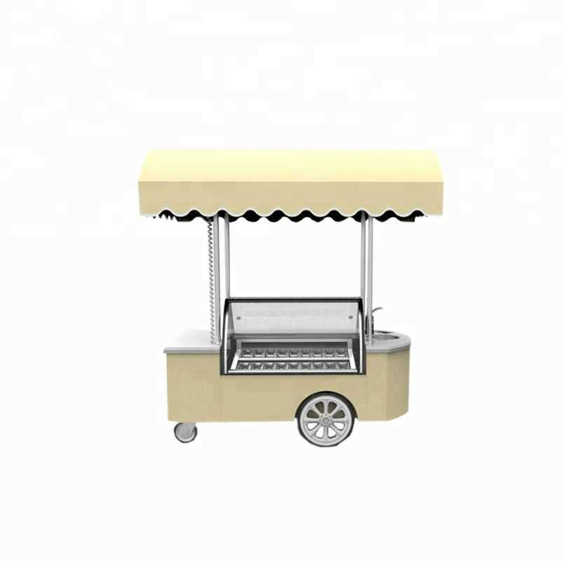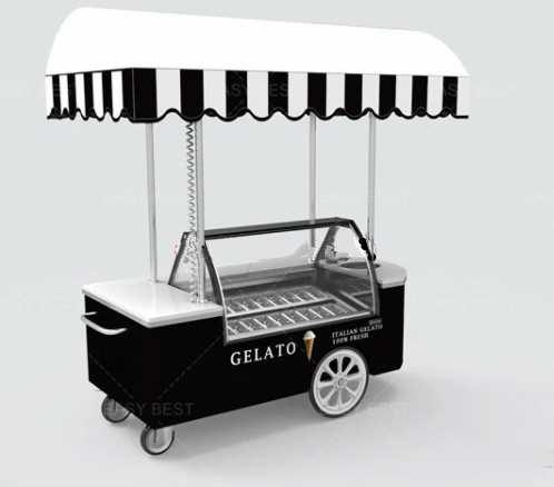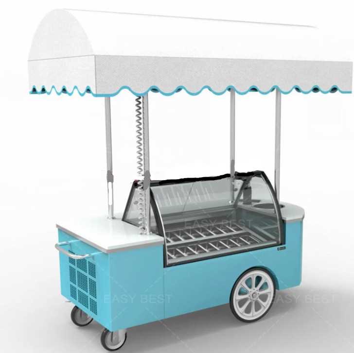 | Our ice cream cart standard configuration: highly quality 304 stainless steel with ice cream pans or popsicle trays, from the temperature -15 to -20 degree in 220V/50Hz. Besides, our cart is installed two big wheels with one small wheel and water-proof canvas, which is convenient for our clients to push or pull outside the street, beach, park or some event to protect from the damage the sun and the rain. |