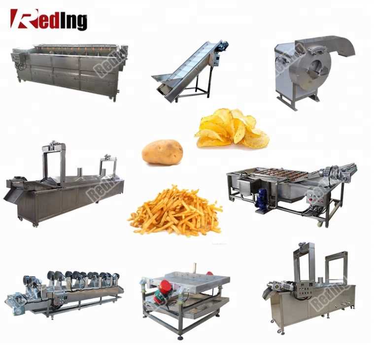 Potato Chips Making Machine is automatic from elevator to finished French fries. The Cutting size of French fries is adjustable from 4mm to 12mm. Machines made of Stainless Steel 304, with hig h superior quality and stable working.