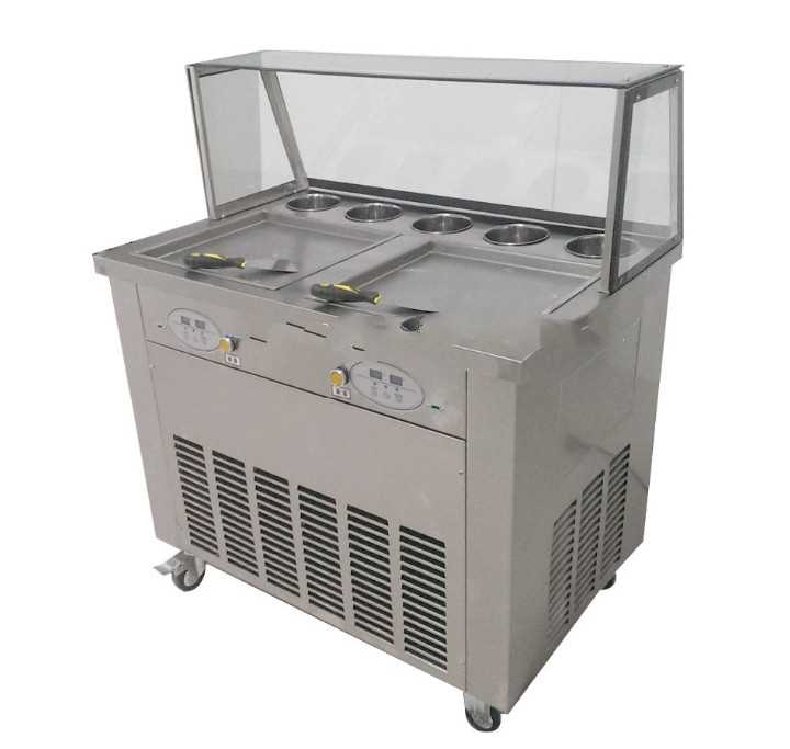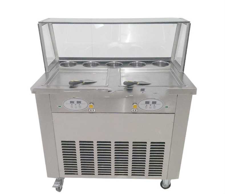 2 Pan Computer Control Pan Roller Rolling Rolled Flat Fried Ice Fryer Cream Machine.