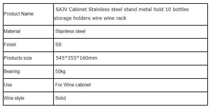 SAJV-015-65 Cabinet Stainless steel stand metal hold 10 bottles storage holders wire wine rack