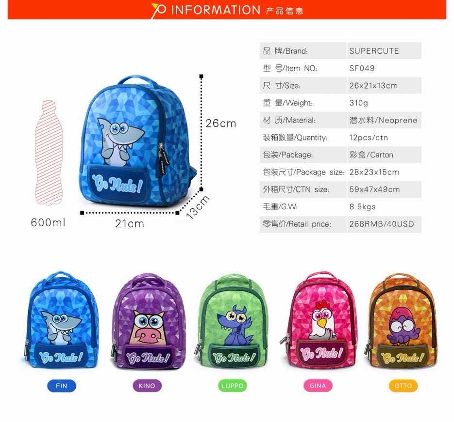 SUPERCUTE Designer Neoprene Cartoon Waterproof Toddler Kids Backpack Kokonuzz GO NUTS Series for sale