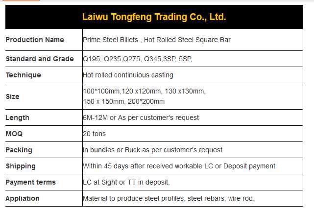 Sample available Q235 Q345 steel billet production 150X150mm price for sale