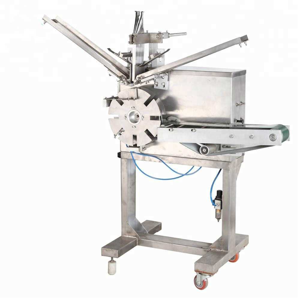 Made of stainless steel and aluminum alloy, this unit is composed of the extrusion filler connecting to the continuous freezer, the storage tank consisting of two wafer feeders located at the left and right sides,and the products output mechanism.