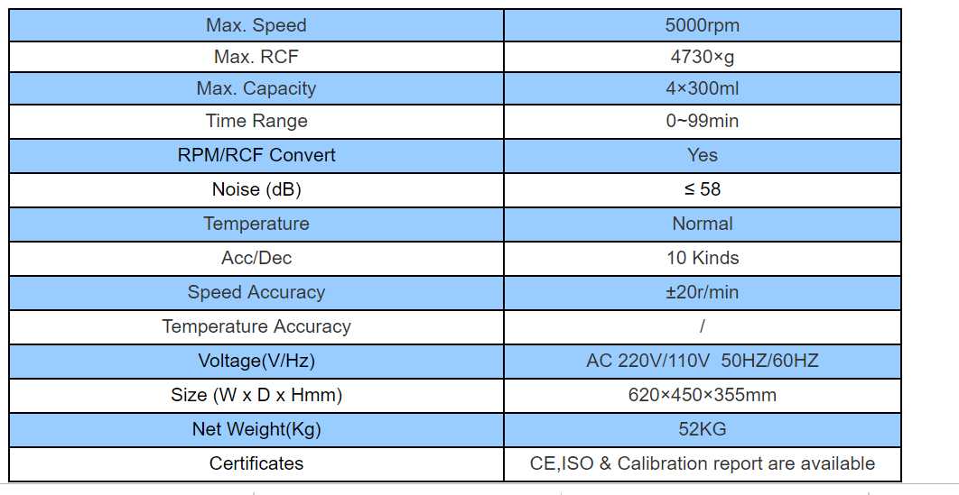 1. Main paramers for TD5A 4 bucketx300ml Swing out rotor laboratory centrifuge