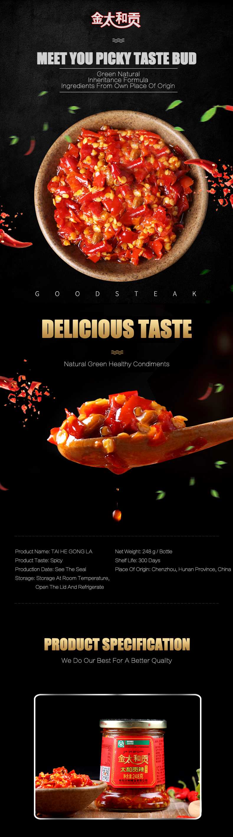 Taihegongye Hot Spciy Seasoning 248g per Bottle, Condiment of Sichuan Flavors, Chili Sauce for sale