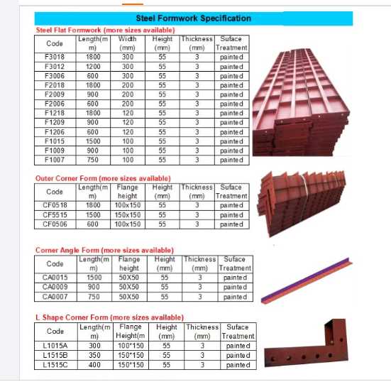 L-Shape Forms - These are short inner corner forms for forming shot lengths of inner right-angle corners of structure. They consist of two form faces of various dimensions