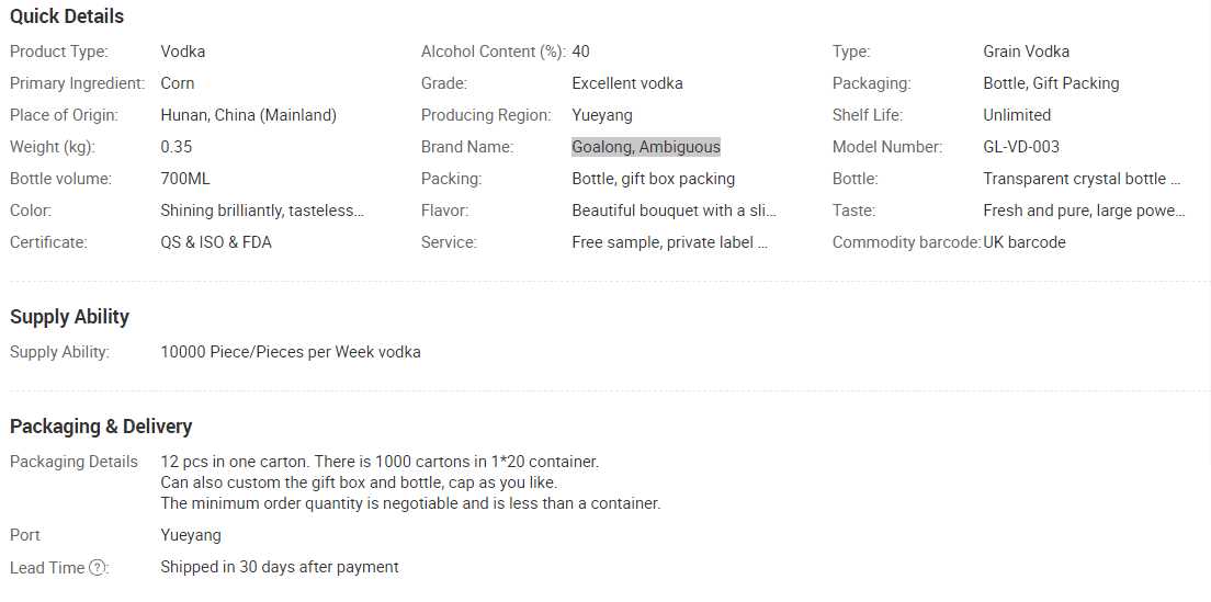 Top sales 750ml alcoholic beverages vodka provide private label with factory price