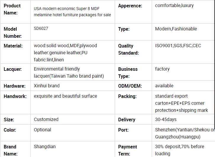 USA modern economic Super 8 MDF melamine hotel furniture packages for sale