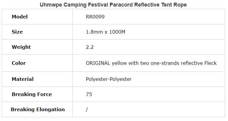 Uhmwpe Camping Festival Paracord Reflective Tent Rope