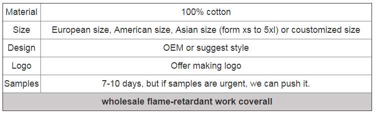 Wholesale flame-retardant work coverall: 1 Inside: plastic bag, outside: Carton 2 As per your request