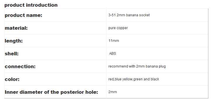 Main Products:Crocodile clip,Banana plug,Terminal,Banana jack,Test line