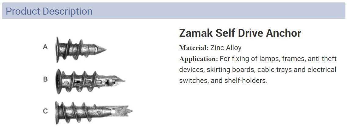 Zinc Alloy Zamak Self Drive Anchor Sale