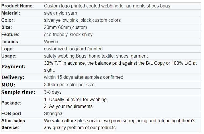 custom logo printed coated webbing for garments shoes bags sale