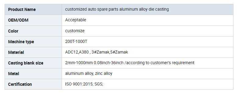 customized auto spare parts aluminum alloy die casting sale