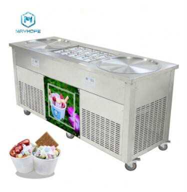 Model: Double pan fried ice cream machine with 10 pre-cooling topping.
