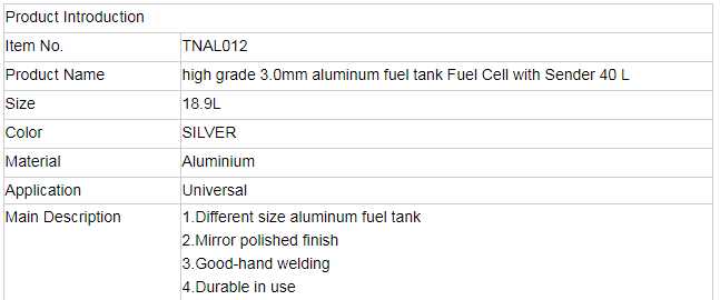 high grade 3.0mm aluminum fuel tank Fuel Cell with Sender 40 L