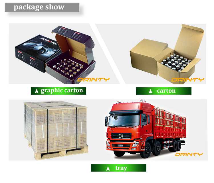 Available package for wheel nut: plastic bag,doublle blister, color cardboard box, color plastic box