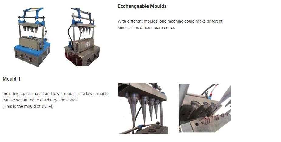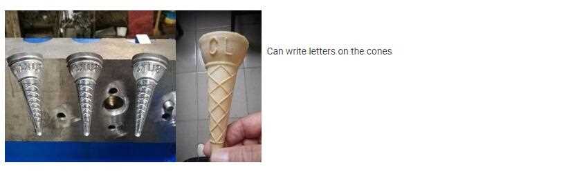3) The moulds are exchangeable, with different moulds, one machine could make different kinds of ice cream cones