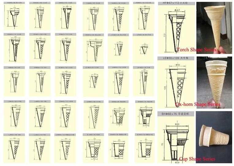 4) Moulds: Various shapes or sizes, such as cone, torch shape, ox horn shape, flat base cup, two-flavor shape etc. Or by customer made.