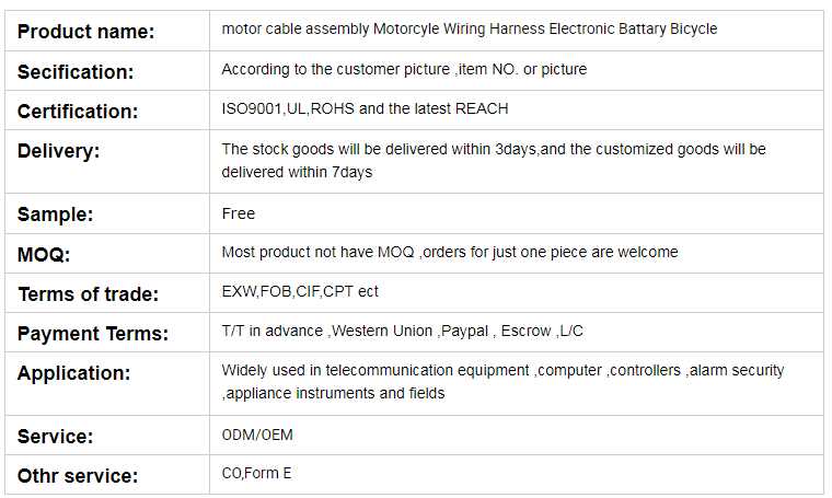 motor cable assembly Motorcycle Wiring Harness Electronic Battery Bicycle for sale