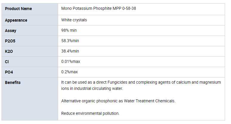 soluble fertilizer Mono Potassium Phosphite MPP 0-58-38 producer for sale