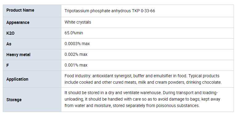 soluble fertilizer Tripotassium Phosphate Anhydrous TKP 0-33-66 A well-researched and highly active for sale